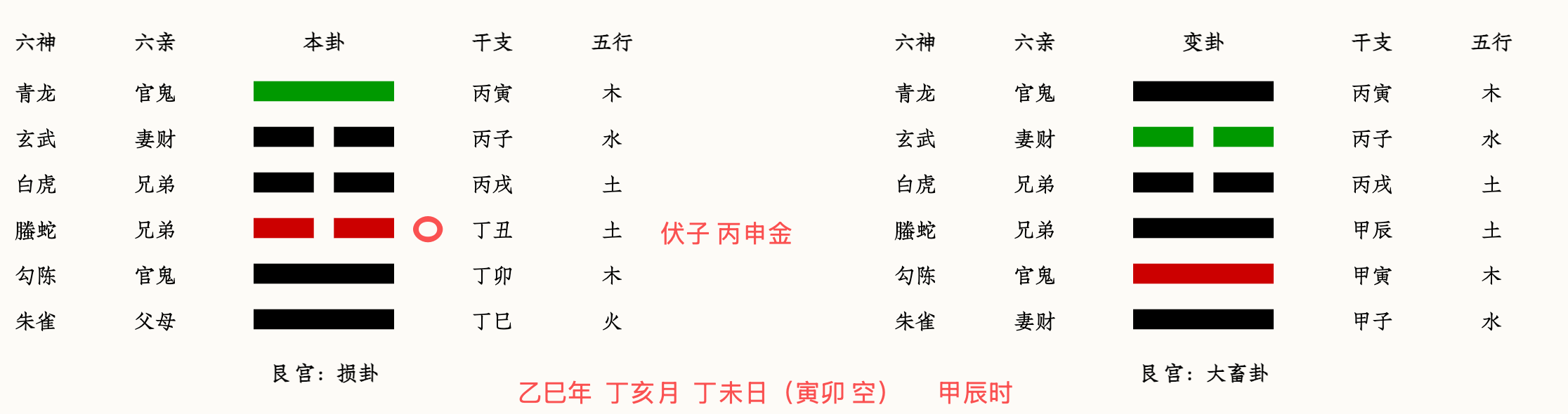 换工作单位,首先用神父母爻,父母爻在初爻,刚刚起步的一个单位(据查资料,建立与2023年,符合刚刚起步),得月建冲冲克为月破,又生日未土,只得太岁值。当地对该单位施压,本单位开销也大,压力有点明显。太岁是国家级,今年明年两年国家扶持力度还是有的。